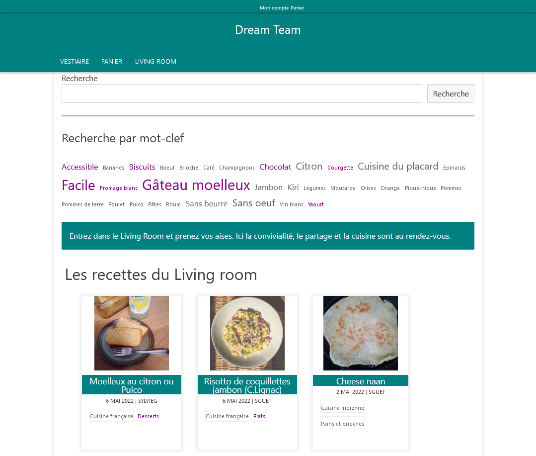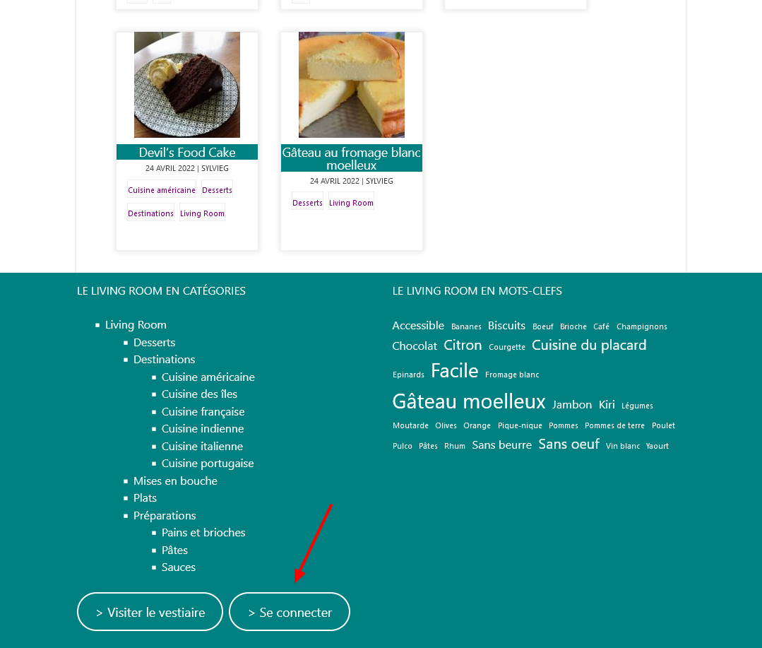 J’arrive sur le site dans la partie Living Room (zone dédiée aux recettes)