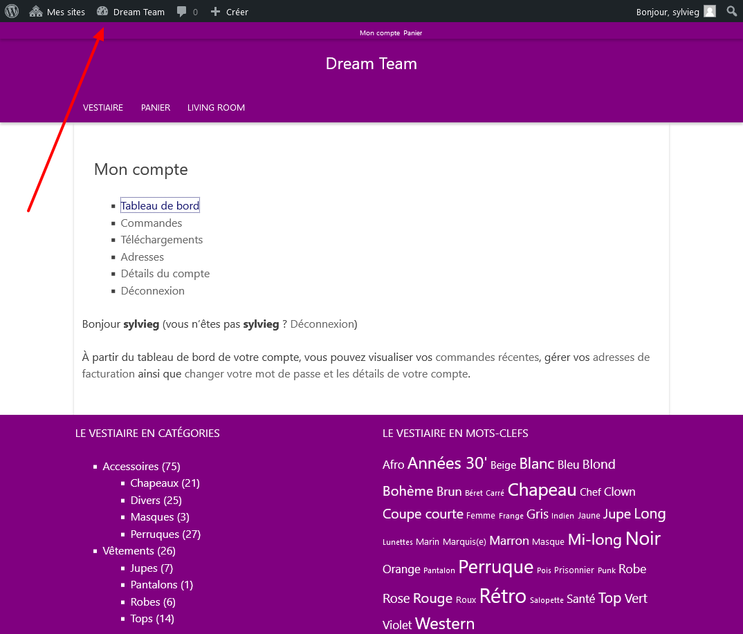 Une barre d’administration apparaît en haut. Cliquez alors sur Dream Team.